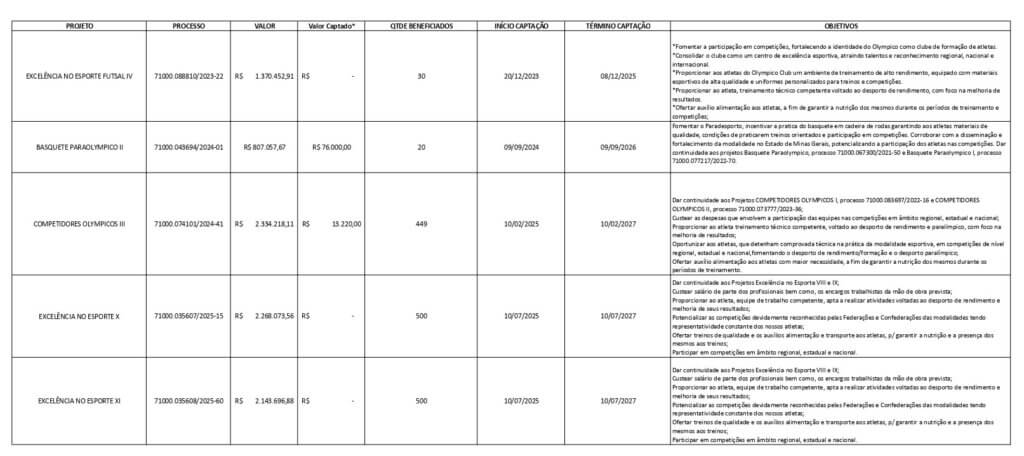 As empresas podem investir até 2% desse valor e as pessoas físicas, até 7% do imposto devido. Os projetos desportivos e paradesportivos, em cujo favor serão captados e direcionados os recursos oriundos dos incentivos previstos nesta Lei, atenderão a pelo menos uma das seguintes manifestações, nos termos e condições definidas em regulamento: (Redação dada pela Lei nº 11.472, de 2007)