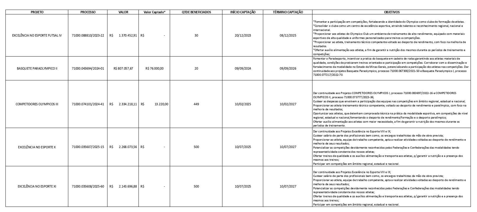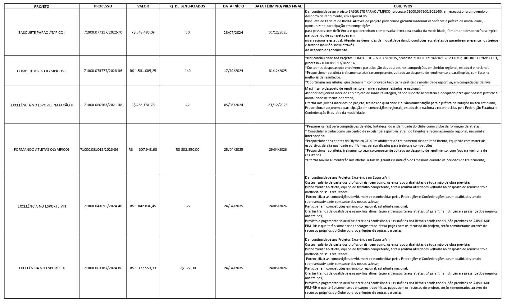 - Excelência no Esporte VIII – 1º Remanejamento